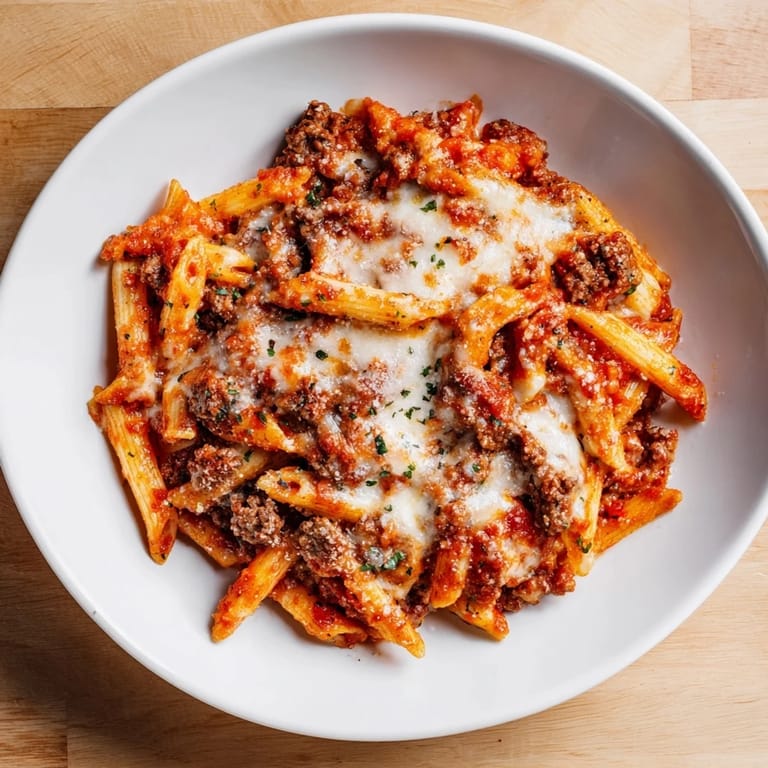 Save A hearty, comforting casserole featuring tender penne pasta, savory ground beef, rich tomato sauce, and a golden, bubbling cheese topping—perfect for family dinners or potlucks.