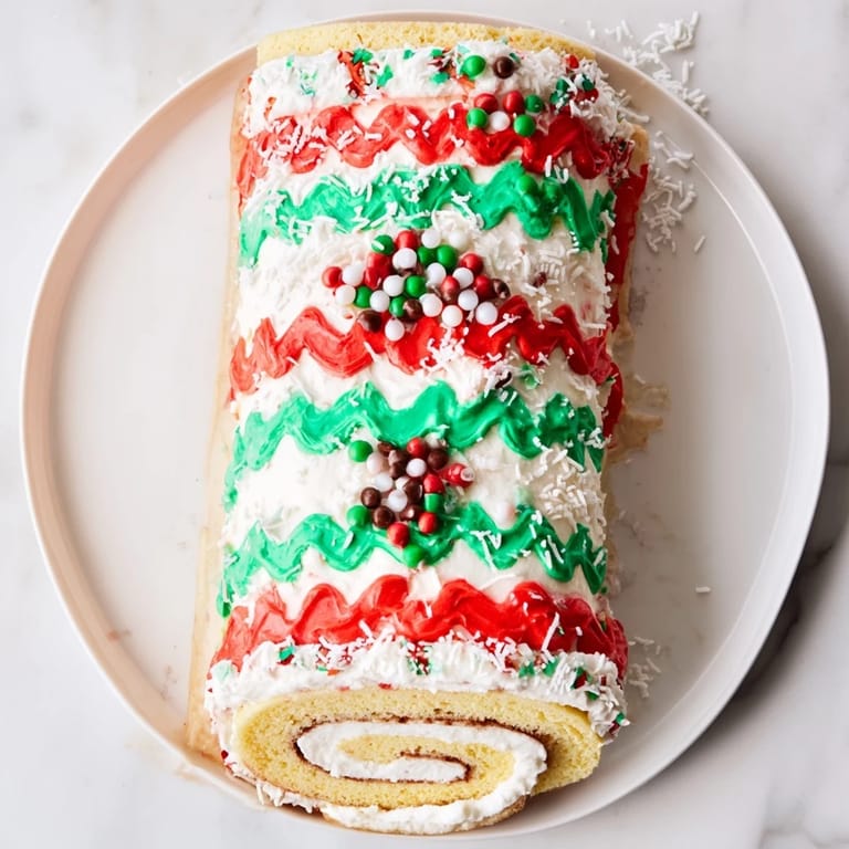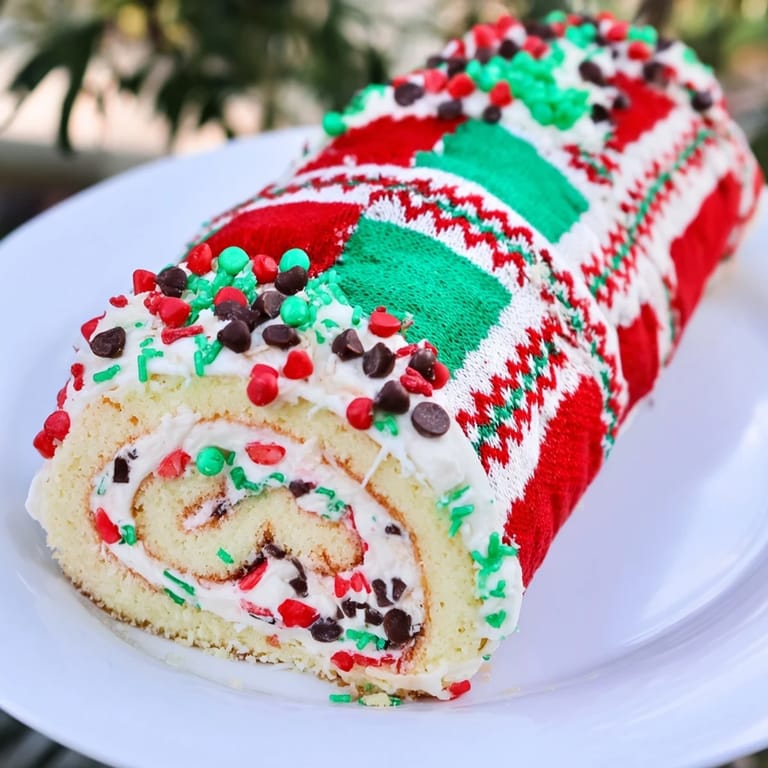 Last December, my family challenged each other to make the most outrageous, silly sweater-inspired desserts. This cake roll not only got big laughs, but everyone wanted a slice because the decorations were so bright and festive.
