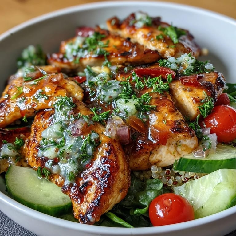 Save There's something about the smell of chicken hitting a hot grill that makes everything feel intentional. I discovered this bowl recipe on a Tuesday afternoon when my fridge was overflowing with vegetables and I needed something that didn't feel like I was just throwing together leftovers. The lemon vinaigrette is what transformed it from a sad desk lunch into something I actually looked forward to eating, and now my coworkers ask me what smells so good every time I open my container.