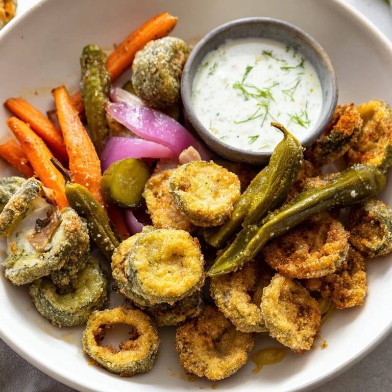 Save A tangy, crunchy feast featuring crispy fried pickles, a variety of pickled vegetables, and a playful twist with pickled-wrapped bites—perfect for true pickle enthusiasts.