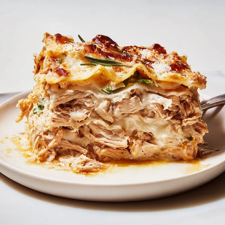 Save A savory twist on the classic Italian favorite, this lasagna layers tender chicken, creamy béchamel, mozzarella, and fresh rosemary for a comforting, fragrant meal.