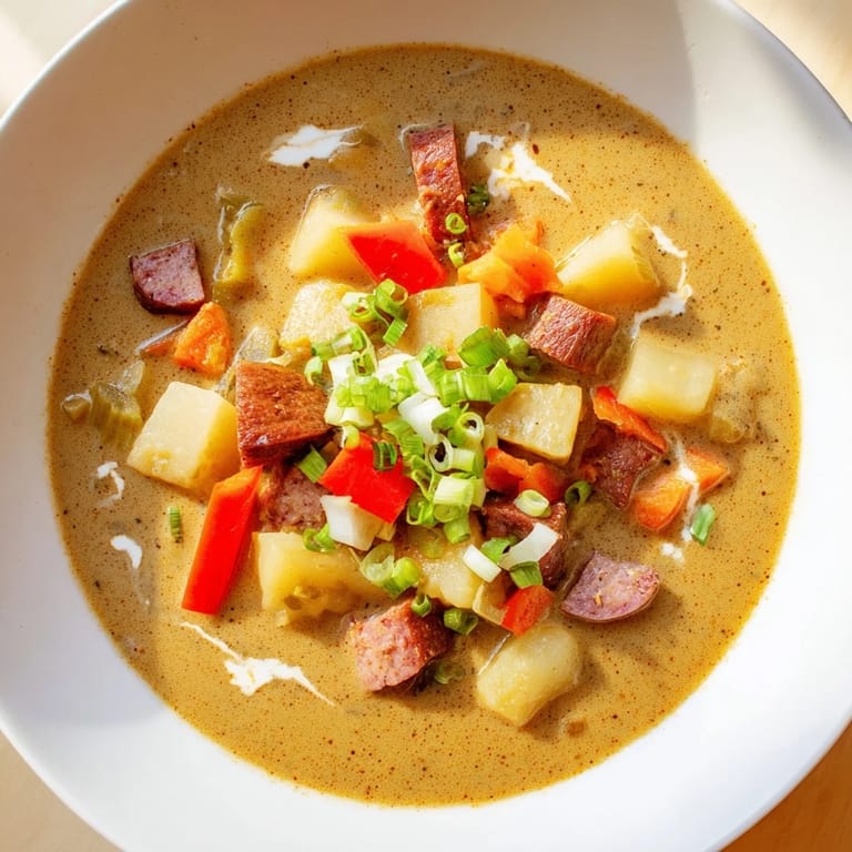 Save A hearty, flavorful soup featuring tender potatoes, vegetables, and Cajun spices, all simmered to perfection in a slow cooker. Perfect for a comforting weeknight meal.