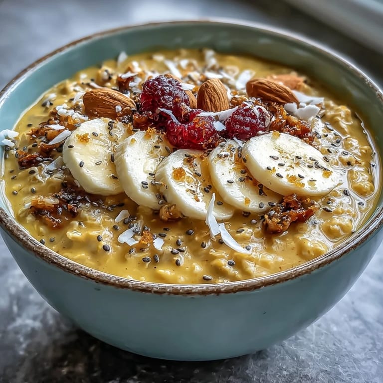 Save Start your day with a vibrant and nourishing bowl of Vegan Golden Milk Overnight Oats. This creamy breakfast is infused with anti-inflammatory turmeric, warming ginger, and a hint of spice, making it the perfect energizing meal to prepare ahead of time. It is a colorful and flavorful fusion that brings a golden glow to your morning routine.