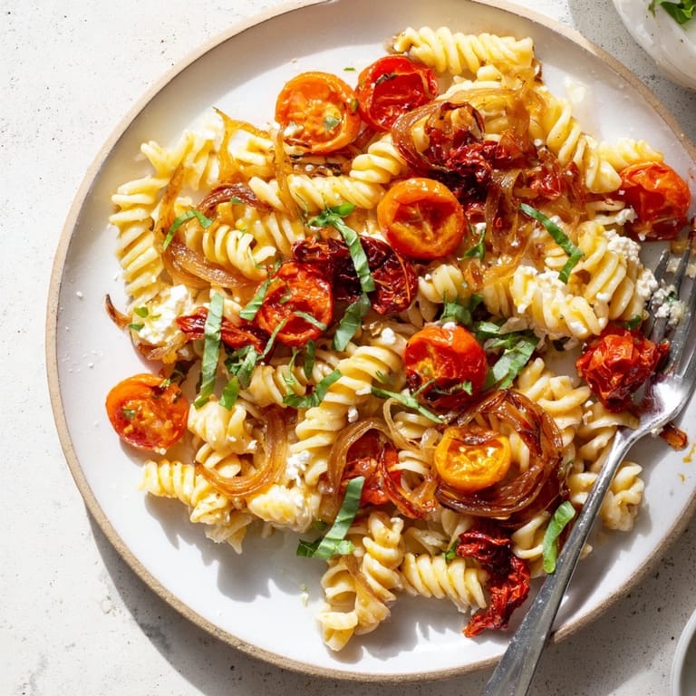 Save A creamy, tangy baked feta pasta elevated with sweet caramelised onions and rich sun-dried tomatoes. This modern twist delivers deep flavor and irresistible texture, perfect for an easy weeknight meal.
