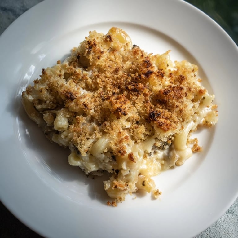 Mix panko breadcrumbs with melted butter and grated Parmesan, then sprinkle on top before baking to get a golden, crunchy finish.