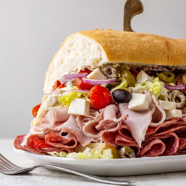 Save A vibrant, deli-style sandwich featuring a medley of Italian-inspired ingredients chopped and tossed together for the ultimate flavor-packed bite, perfect for lunch or a crowd-pleasing party platter.