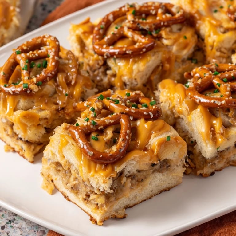 - Topping: 1 cup pretzel twists, roughly crushed, 1/4 cup shredded sharp cheddar cheese (optional), 1 tablespoon chopped chives (optional)
