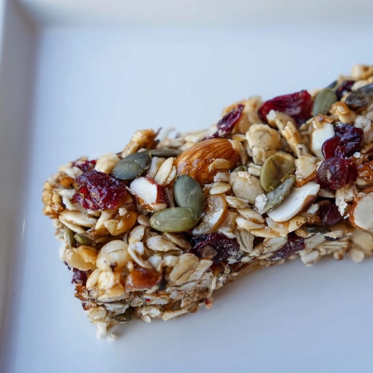 These bars combine roasted pumpkin seeds, tart cranberries, rolled oats, almonds, and coconut for a delightful crunch and chewiness. Sweetened naturally with honey and brown sugar, they bake to a golden finish that’s perfect for snacking anytime. Simple preparation involves mixing dry ingredients, simmering a sweet butter blend, then baking until edges turn crisp. Ideal for a nutritious grab-and-go option that balances texture and flavor.