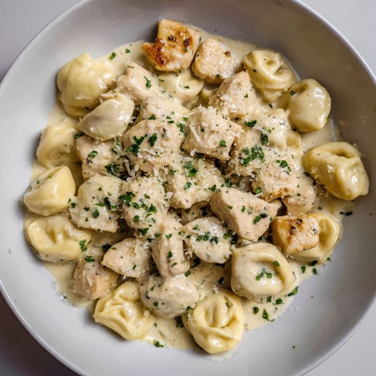 Combine main ingredients: Return the cooked chicken and tortellini to the skillet. Toss gently to coat evenly with the sauce.